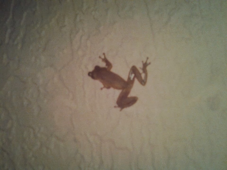 One constant besides anoles whenever I go to Disney World are these guys: Cuban tree frogs. I've caught loads of them; more than green tree frogs, toads, anoles (although anoles are EVERYWHERE.) I usually catch them right outside my hotel rooms. They're considered invasive (seeing as how they're called "Cuban" and not "Floridian" tree frogs. We'll get to invasive species later. Science!). Here's one of the only pictures of the abundant lil' bastardos: